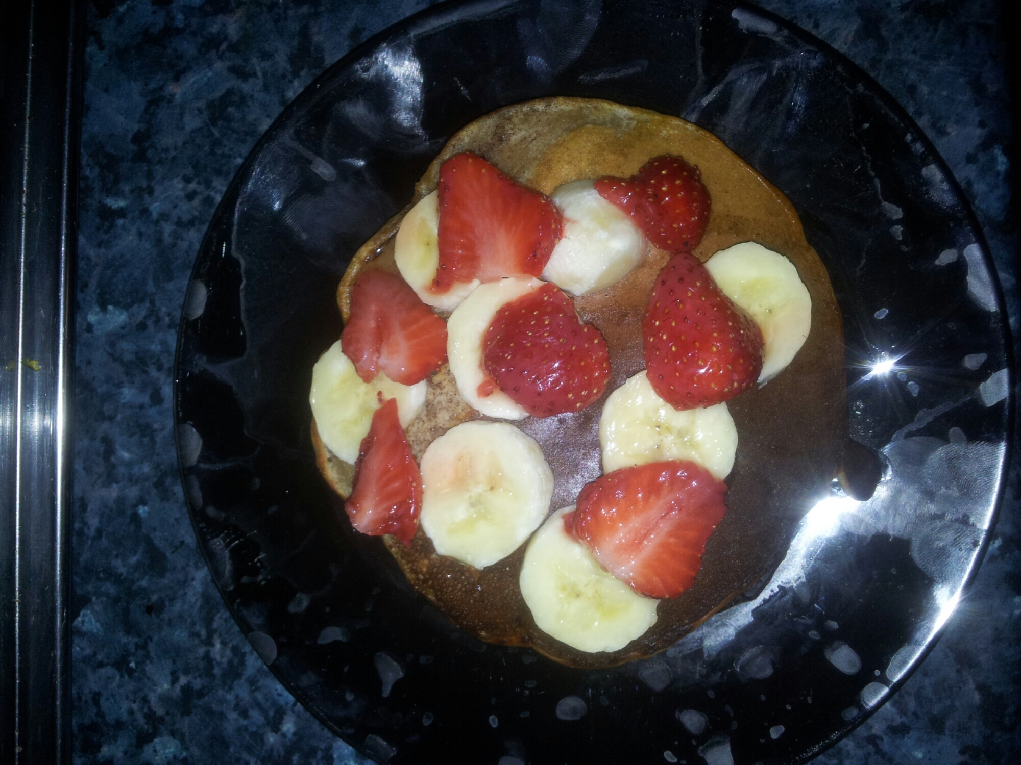 I’ve been enjoying Thug Kitchen a lot lately and decided to try out their peach pancakes over the weekend – shown here topped with banana, strawberries and agave.