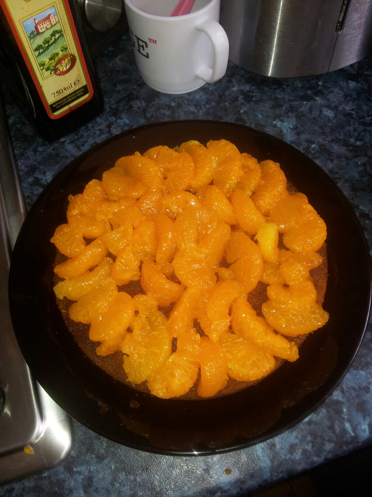 Empty the juice from the mandarin segments into a saucepan and add the sugar and spices. Bring to the boil and then simmer until thick and syrupy. Remove from the heat, combine with the mandarin segments AND LEAVE TO COOL. Whip the cream until stiff. Arrange half of the mandarin segments on the bottom layer of your cake and drizzle with syrup. Top with whipped cream and the second layer of cake. Arrange the remaining segements on top of the cake and drizzle with a bit more syrup.