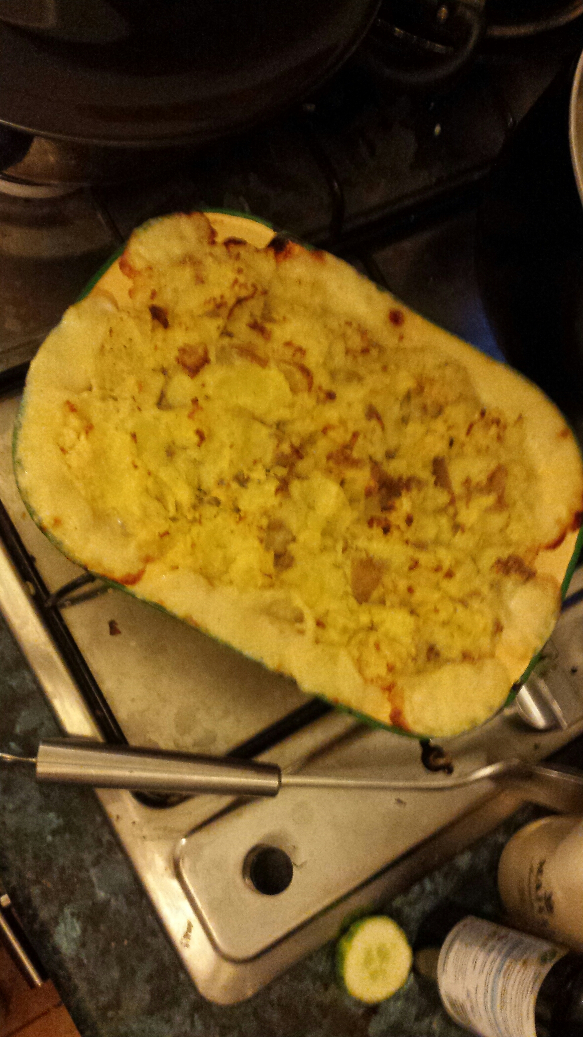 The mash is “rustic” because I was lazy and didn’t bother skinning the potatoes – but I did take the time to add parmesan and yoghurt, which made all the difference.